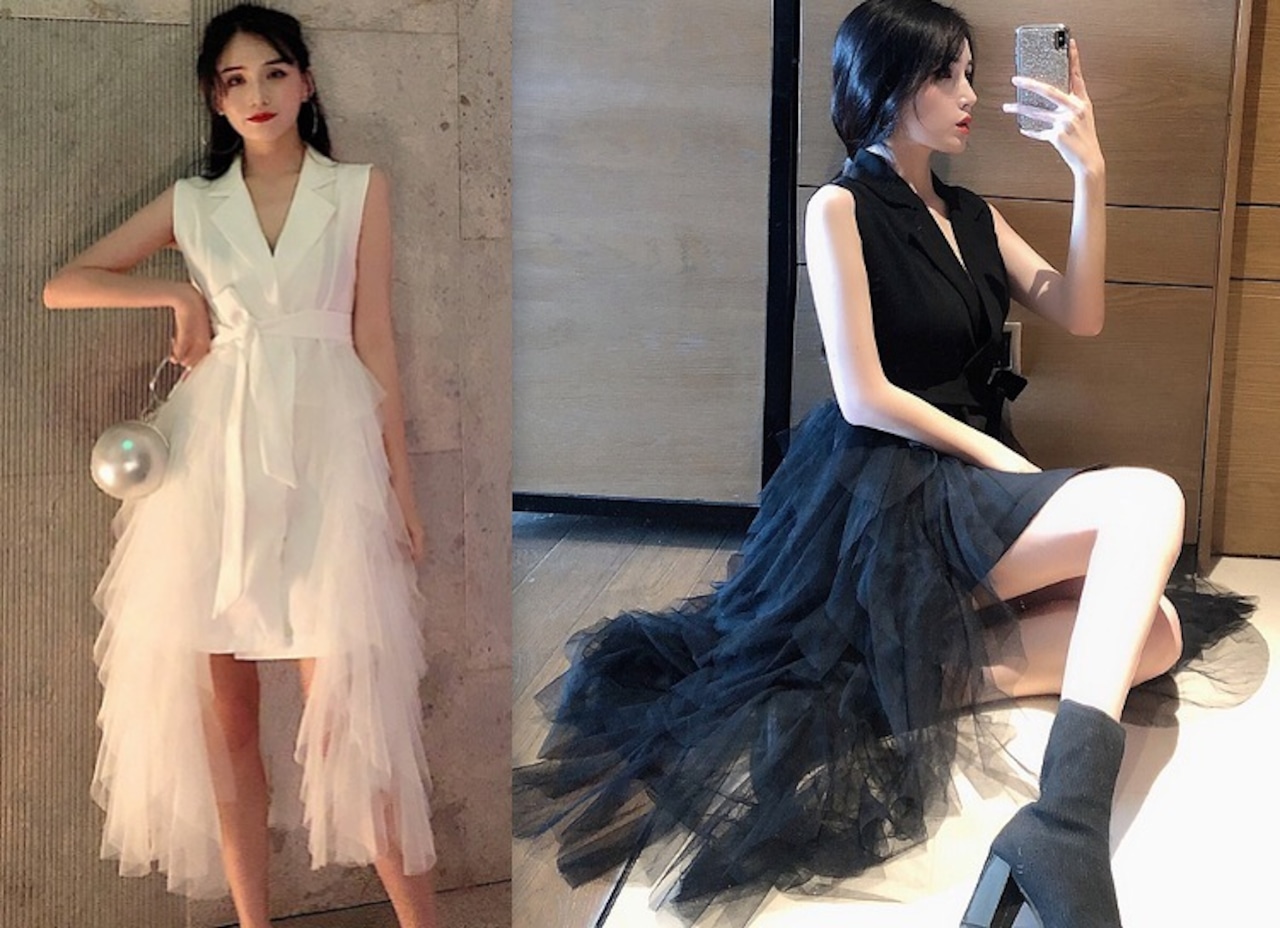 ワンピースチュールフリル